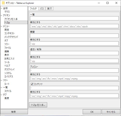 7-Zipアドオンは7-Zipの7z.dllと7zG.exeを使うことで様々な圧縮ファイルを扱えるようになります。 圧縮ファイル中のプレビューやサムネイルプラスと組み合わせれば、サムネイル表示もできます。 オプション「フィルター」 「一覧」は開くファイルをワイルド…